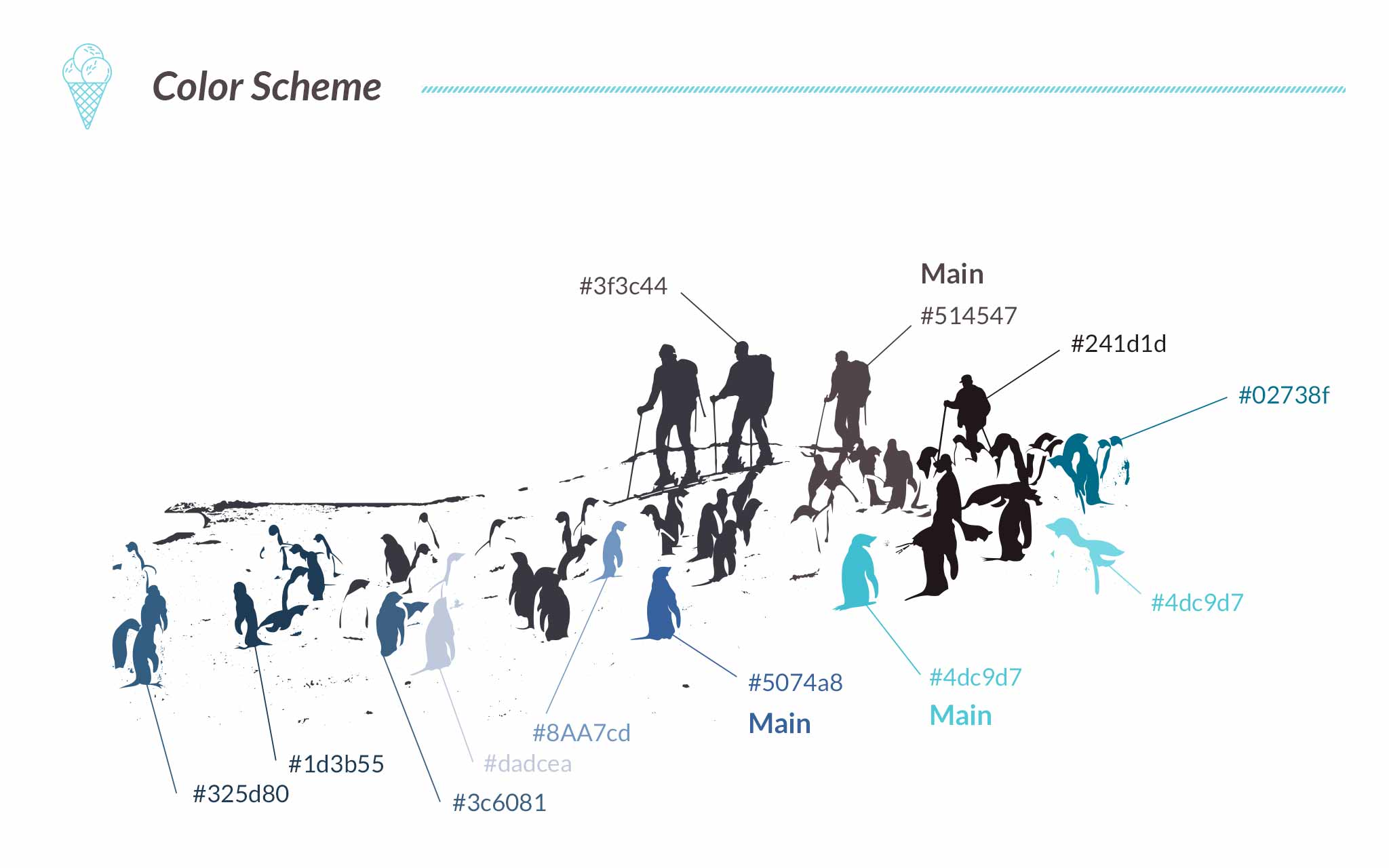 Color Palette: Developed a color scheme inspired by the natural landscapes of Antarctica and Tierra del Fuego, featuring cool blues, icy whites, and vibrant shades to evoke a sense of adventure.
